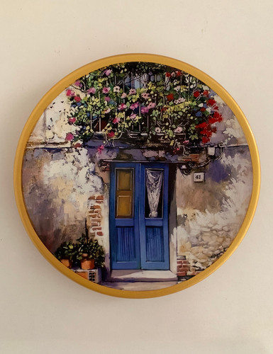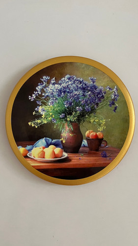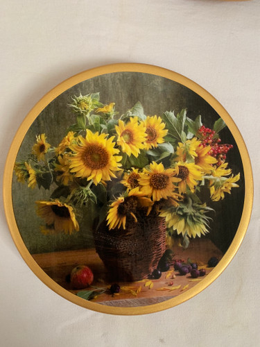 دیوارکوب گلدان سفالی آبی و آفتابگردان