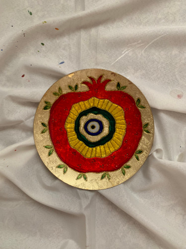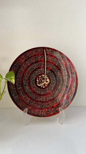 بشقاب دیوارکوب شیشه ای طرح چهارقل زرشکی