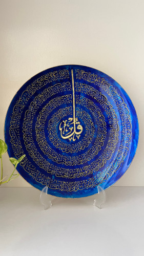 بشقاب دیوارکوب شیشه ای طرح چهارقل آبی کاربنی