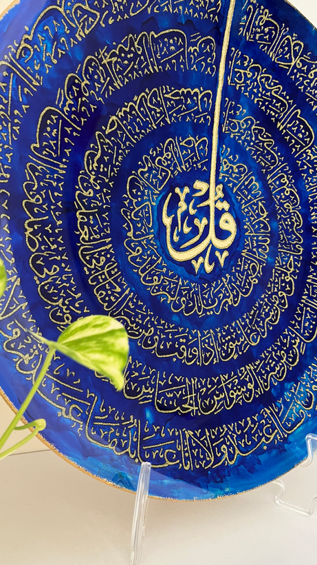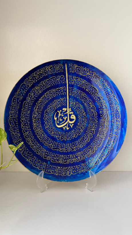 بشقاب دیوارکوب شیشه ای طرح چهارقل آبی کاربنی