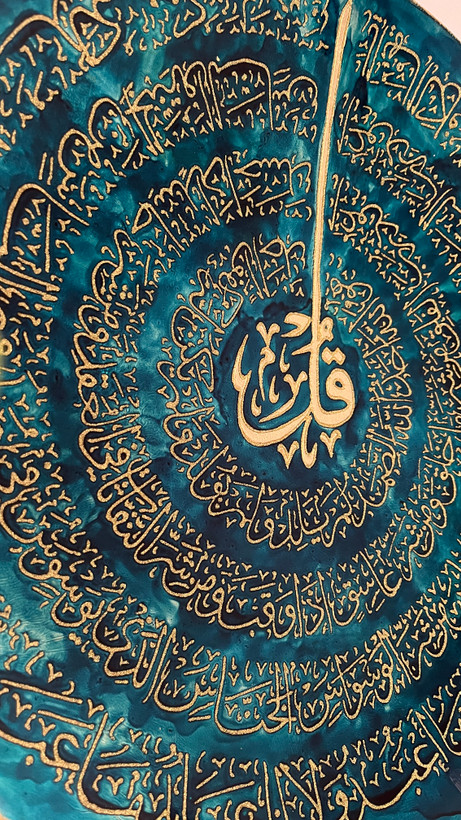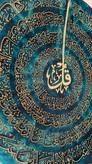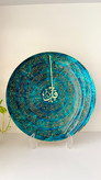 بشقاب دیوارکوب شیشه ای طرح چهارقل آبی فیروزه ای