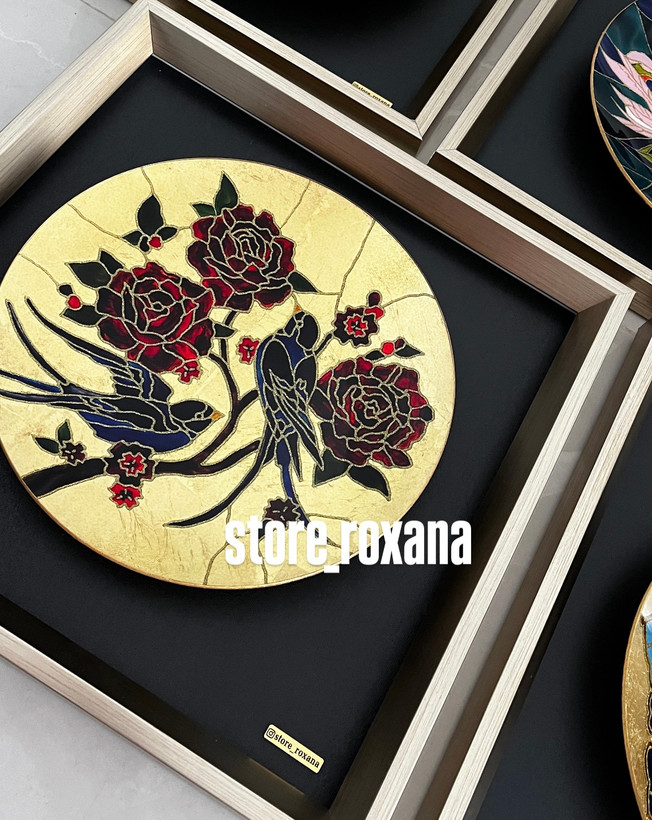 دیوارکوب ویترای طرح پرنده و گل رز همراه با قاب
